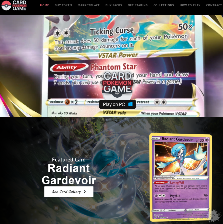 在撰写本文时仍在在线的网站“pokemon-go[.]io”声称拥有围绕 Pokemon 特许经营权构建的新 NFT 纸牌游戏,为用户提供战略乐趣以及 NFT 投资利润。