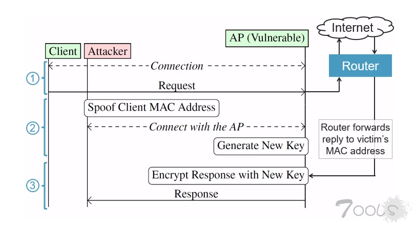 目标是通过利用当安全环境改变时大多数Wi-Fi栈不能充分地使它们的传输队列出列或清除的事实,从接入点泄漏去往受害者客户端站的帧。
