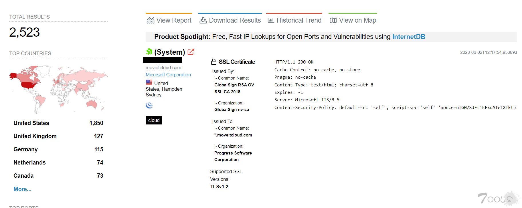截至5月31日,Rapid7专家发现了大约2500个可在互联网上公开访问的MOVEit Transfer实例,其中很大一部分位于美国。