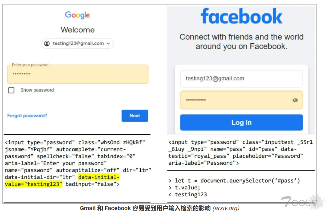 随后的测量显示,在排名前 10,000 的网站中(根据 Tranco),大约有 1,100 个网站在 HTML DOM 中以纯文本形式存储用户密码。