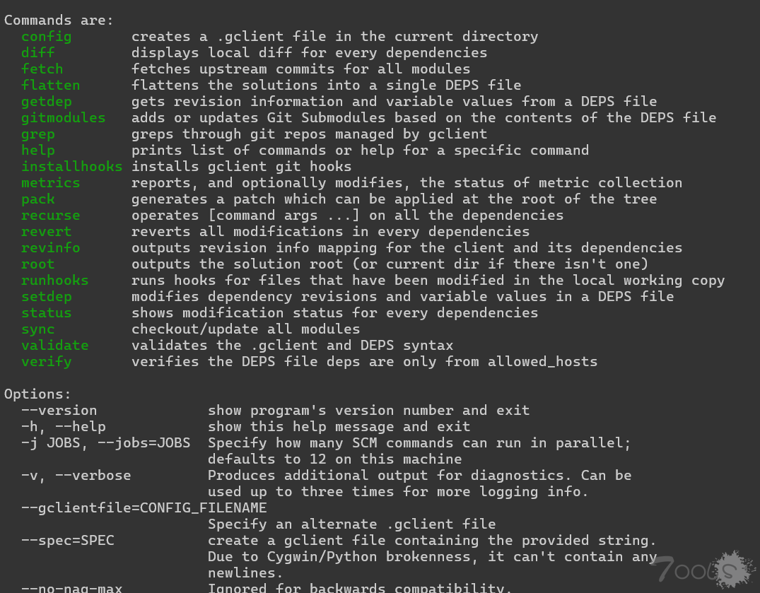 命令行执行gclient,如下所示为安装成功(首次执行会更新)