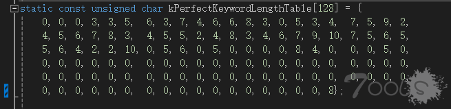 static const unsigned char kPerfectKeywordLengthTable[128] = {