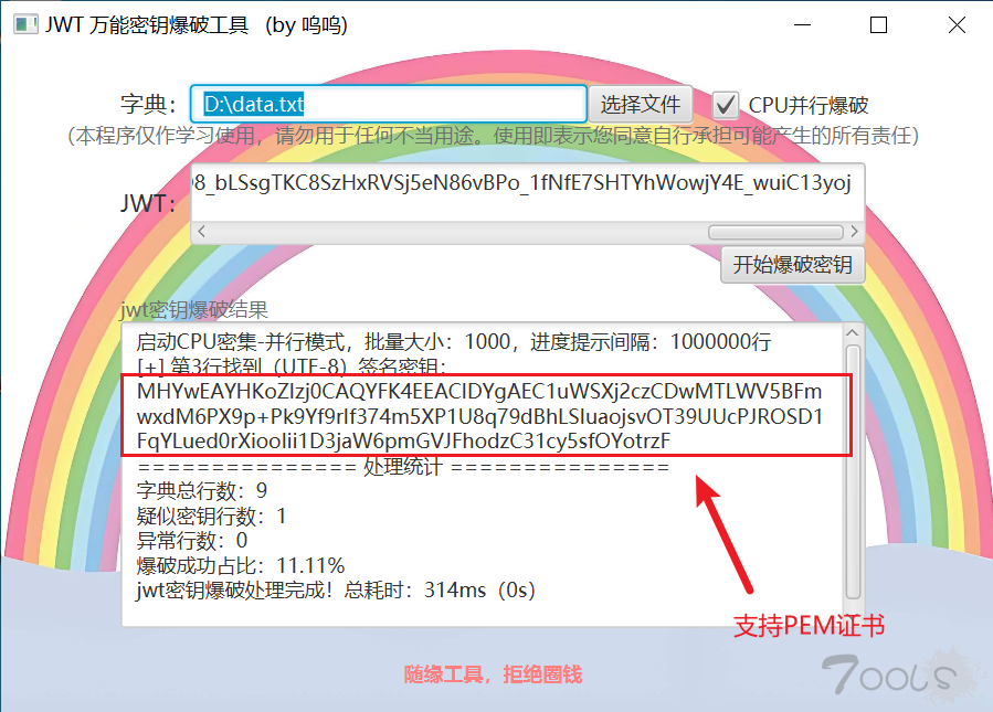 JWT密钥爆破工具--支持PEM证书