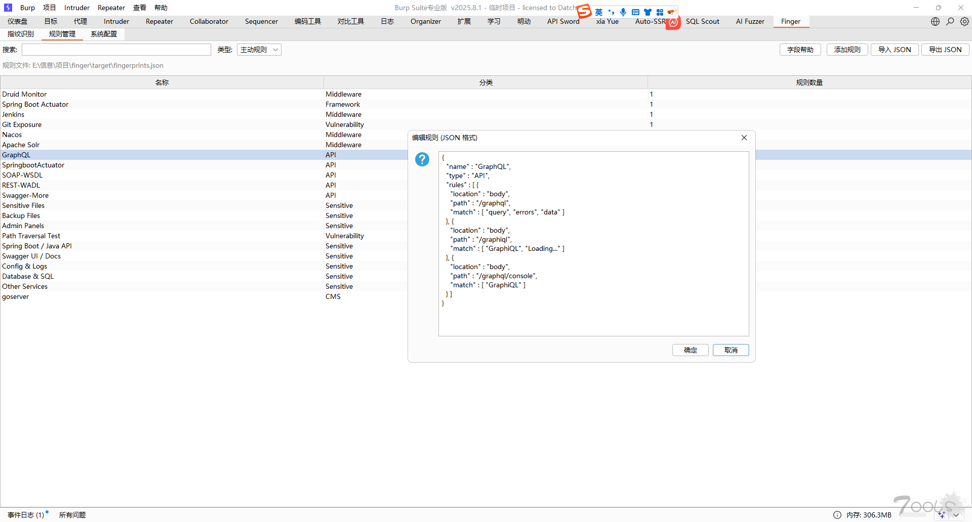 插件加载后会自动在 rules/ 目录下搜索 fingerprints.json。