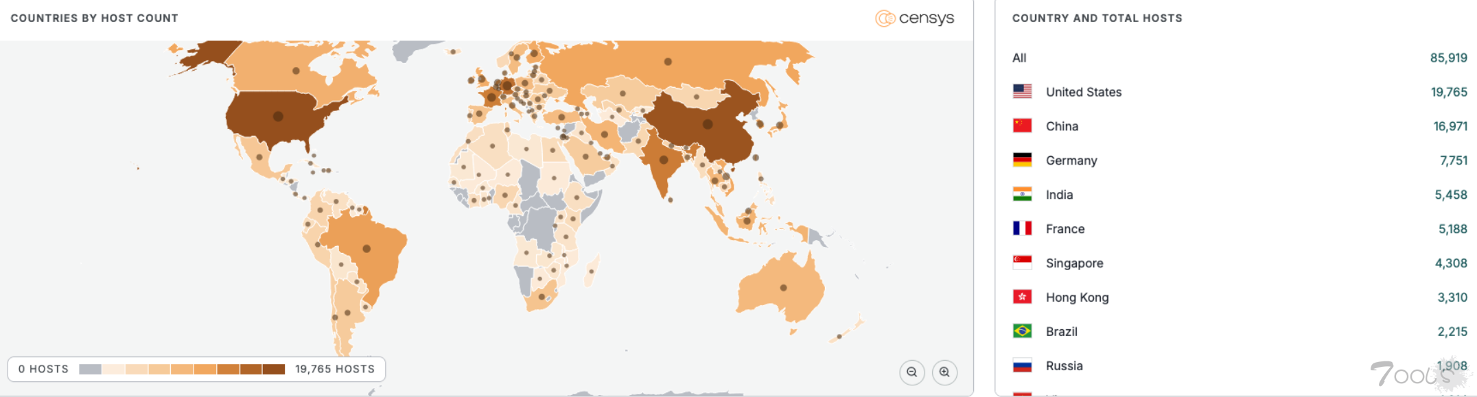 攻击面管理公司 Censys 的数据显示,存在超过87,000 个潜在易受攻击的实例,其中大部分位于美国、中国、德国、印度和法国。Wiz 指出,42% 的云环境中至少有一个 MongoDB 实例存在 CVE-2025-14847 漏洞。这包括暴露在互联网上的资源和内部资源。