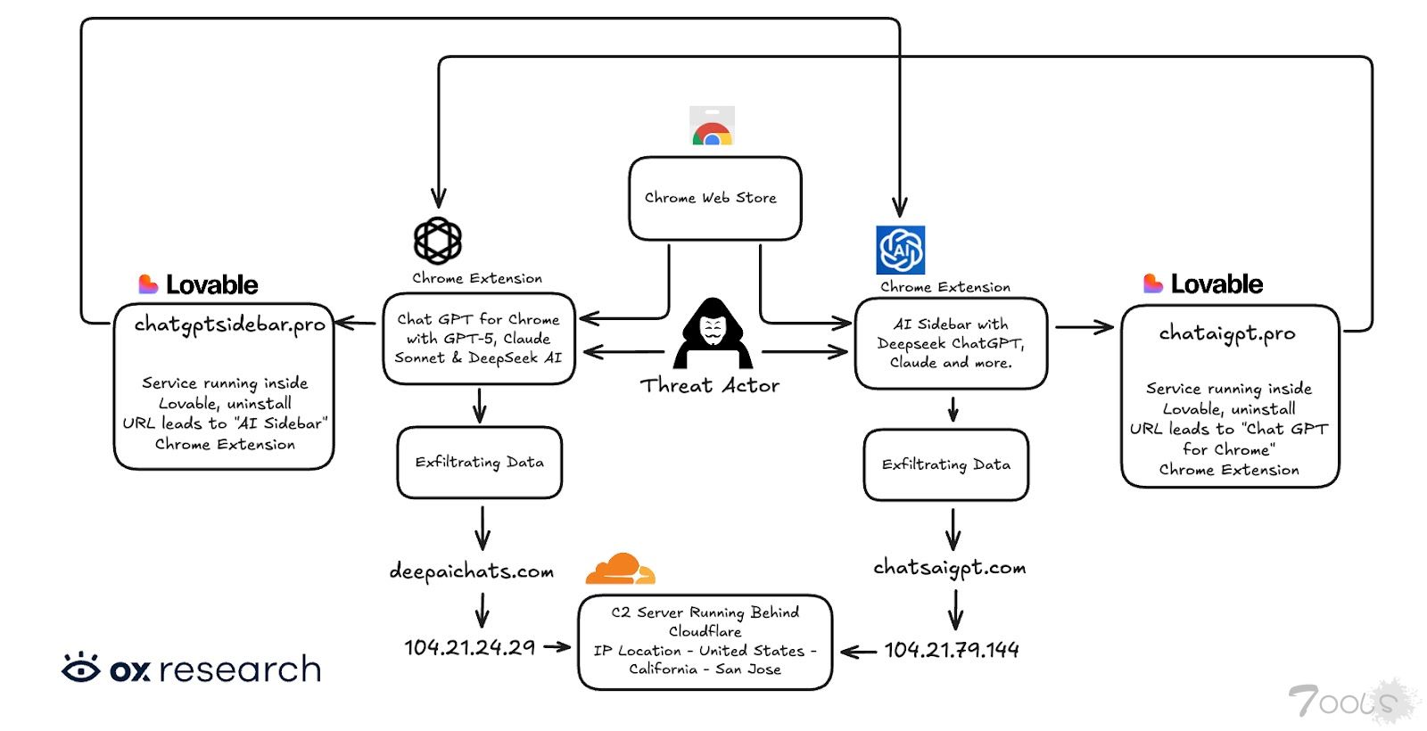 OX 研究团队在例行分析中发现了这一威胁,揭示了克隆 AITOPIA 界面的扩展程序,该界面用于与 GPT 和 Claude 等 LLM 进行聊天。