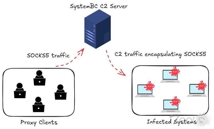 SystemBC 恶意软件家族是一种持续性威胁,最早于 2019 年被发现,如今已发展成为一个庞大的僵尸网络基础设施,控制着全球超过 10,000 台被劫持的设备。 该恶意软件主要用作 SOCKS5 代理和后门,使威胁行为者能够掩盖其恶意流量并长期访问受感染的网络。