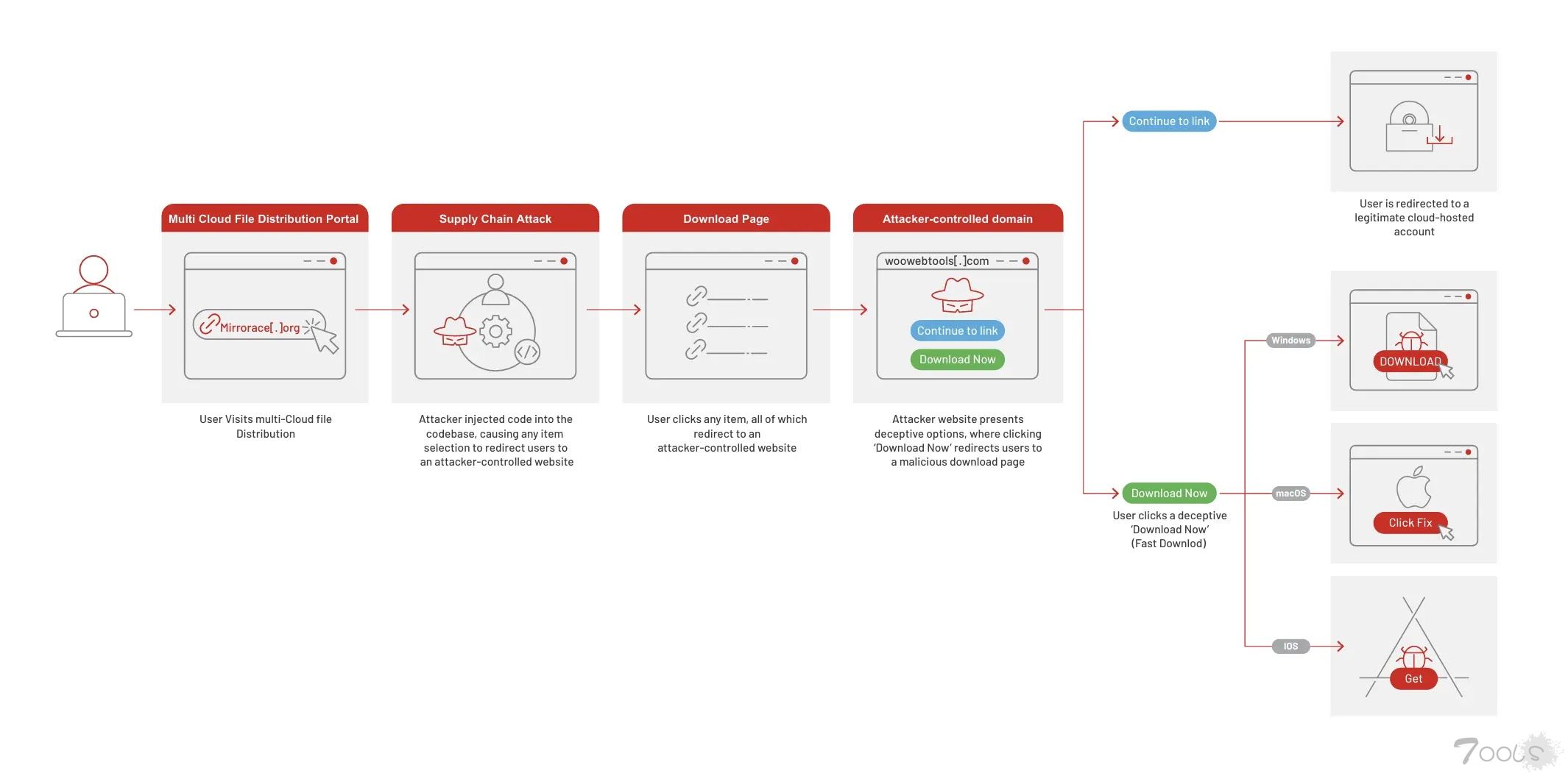 一场复杂精密的网络威胁正在蔓延,攻击者通过被篡改的镜像网站与 GitHub 代码仓库,向多个操作系统平台用户投递恶意软件。