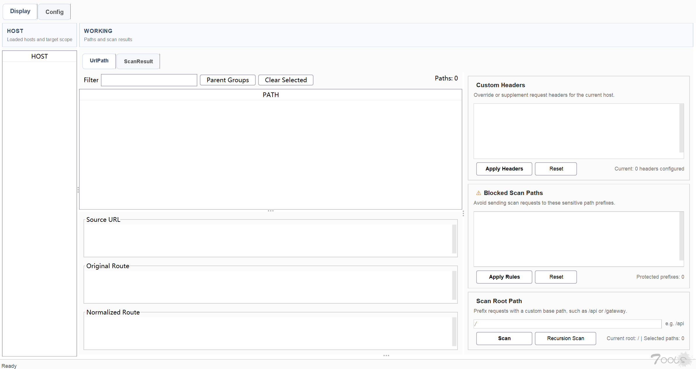 - UrlPath:支持路由的勾选与过滤,列出所有Api的数量与路径协助分类扫描。