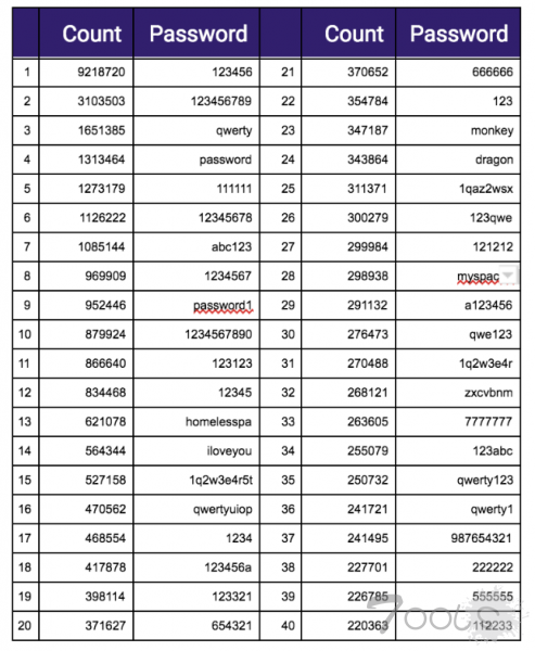 然而令人担忧的是,这些密码都没有进行加密。研究人员通过随机抽检发现大部分都是真实密码,其中大约有 14% 的用户名和密码组合以前并未被黑客社区解密,而现在却以明文形式呈现。由于数据库早已按照字母顺序整齐排列并编入索引,因此任何具备基本网络知识的人都能快速搜索密码,例如,仅需简单地搜索就能从数据库中找到 226,631 个使用“ admin ”、“ administrator ”或者 “ root ”的常见密码。据统计,此批数据库中最常用的密码依旧是“ 123456 ”、“ 123456789 ”、“ qwerty ”、“ password ” 和 “ 111111 ”等。